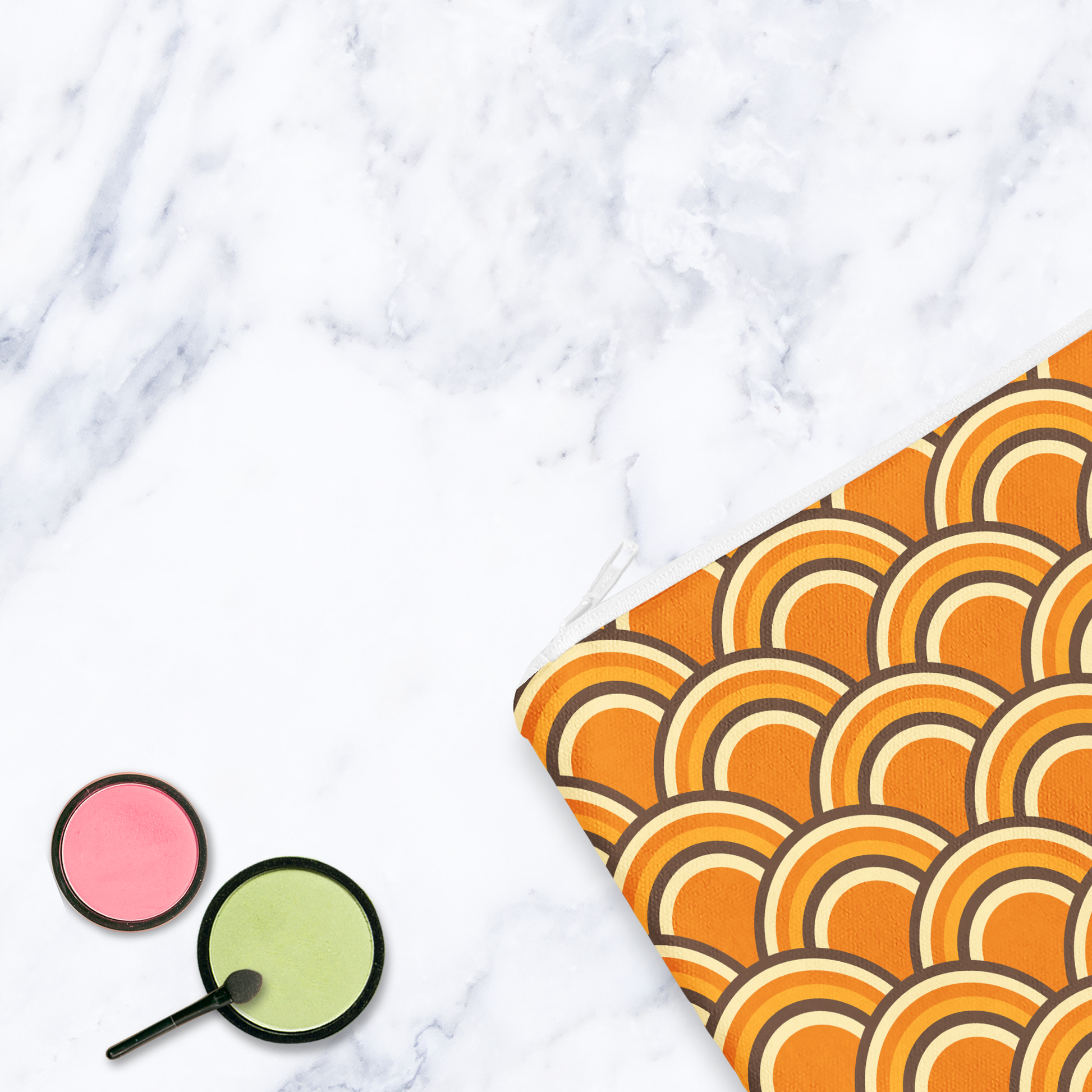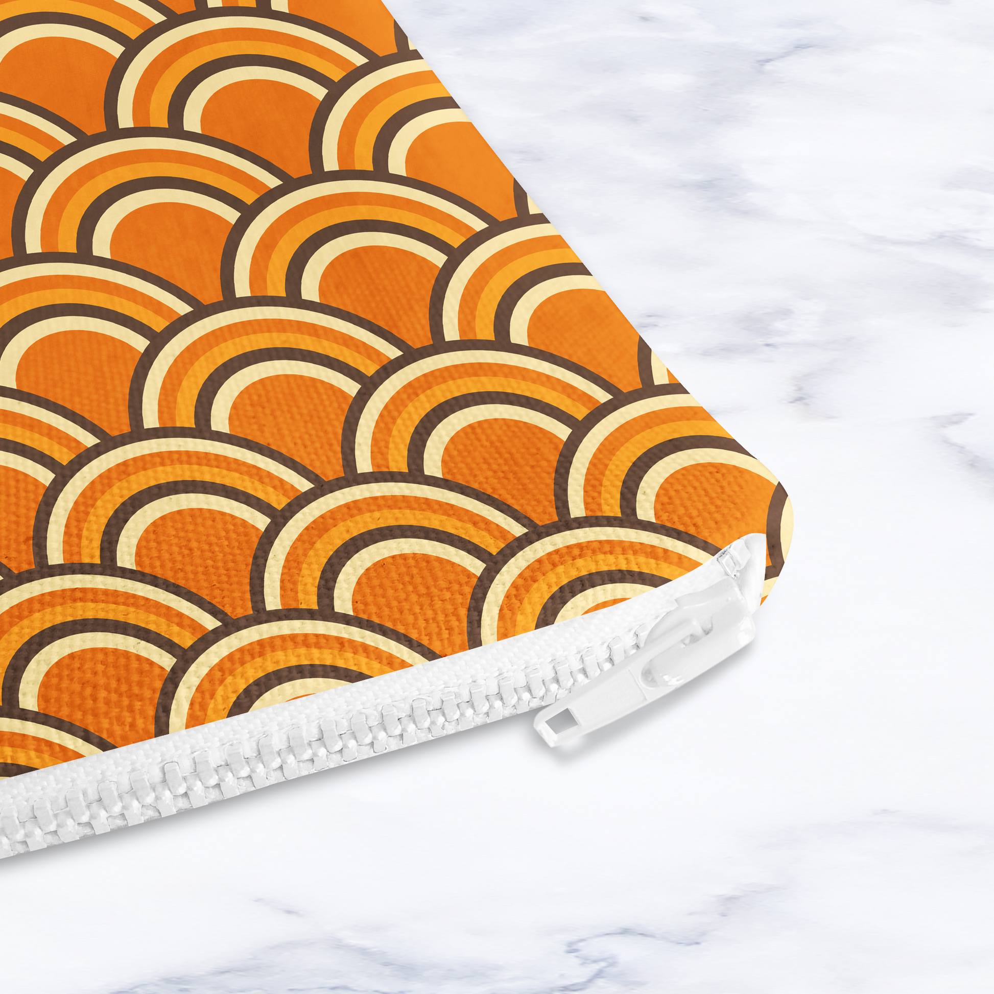 Brighten up your everyday essentials with this handmade orange retro rainbow cosmetic bag by Shadowbright. Featuring a bold 70s-inspired rainbow design in warm orange tones, this eye-catching pouch is both stylish and practical.